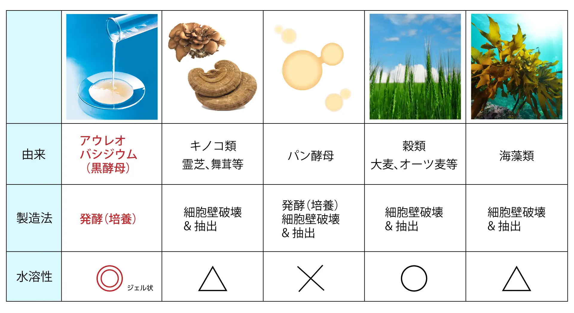 β–グルカンとは β–グルカンとは β–グルカンは漢方でも使われる霊芝(サルノコシカケ)、アガリクスなどのキノコ類や、酵母類、穀類に含まれている食物繊維の一種です。健康維持に効果があるとして、サプリメントだけでなく、医療分野など、世界中で研究されている注目の成分です。 黒酵母β–グルカンとは β–グルカンはもとになる原料(由来)によって、製造方法や特徴が異なります。例えば、「キノコ類」「パン酵母」「海藻類」は、通常、細胞を破壊してからβ–グルカンを抽出しますが、アウレオの黒酵母β–グルカンは黒酵母菌を独自の技術で発酵させるため、細胞の破壊や抽出をすることなく、体に優しい自然のままの黒酵母β–グルカンを摂ることができます。 また黒酵母β–グルカンはβ1,3-1,6グルカンという特殊な分子構造を持っており、各研究機関で注目されています。黒酵母β–グルカンは食事では不足しがちな「水溶性食物繊維」です。善玉菌の大事なエサになるためペットの健康維持をしっかりサポートします。ジェル状で体に優しく与えやすい。黒酵母菌が発酵する過程で、菌体の外にとろ〜りとしたジェル状をつくり出します。この物質が健康維持に役立つ「黒酵母β–グルカン」です。ジェル状のサプリメントのため、そのまま袋から直接食べさせたり、フードに混ぜたりと様々な与え方ができます。 アウレオのβ–グルカンサプリが選ばれる3つの理由 1.高品質なβ-グルカンをお届け 黒酵母β–グルカンは食事では不足しがちな「水溶性食物繊維」です。善玉菌の大事なエサになるためペットの健康維持をしっかりサポートします。健康食品は毎日お摂りいただくことで、健康をサポートする役割があります。アウレオは高品質で高濃度なβ-グルカンを皆さまに安心して毎日お召し上がりいただけるよう、国内の自社工場(GMP認定)で徹底した厳しい衛生管理・品質管理のもと製造をしています。 工場では全商品、品質管理検査、安定した商品供給を行っています。 2.業界トップクラス!24年の信頼! 愛され続けて24年。アウレオは「アウレオバシジウム(黒酵母)β-グルカン」にこだわり24年「研究・開発・製造」を続けています。健康を望まれている一人でも多くの方に届けられるようこれからも成長を続けていきます。 3.確かな研究データに基づいたエビデンス 北海道大学内にオフィスを持つ弊社研究部門「札幌バイオサイエンス事業部」および「株式会社アウレオサイエンス」を通して大学・研究機関と連携し日々β-グルカンの研究をおこなっています。健康食品のエビデンスは「いつでも、誰でも、どのように食べても(目安量はあります)安全であること」が前提です。アウレオのβ-グルカンは日本だけでなく、サプリメントの先進国の欧米など世界各国で特許取得実績があり51件の豊かなエビデンスがあります。